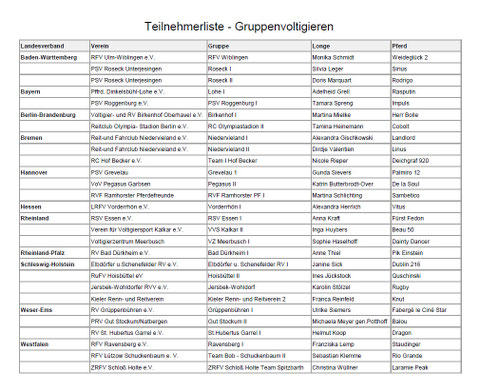 Teilnehmerliste Gruppen